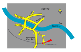Please note that despite there being a road marked on the map from Marsh Barton, it is for buses only, and is NOT accessible to normal traffic.